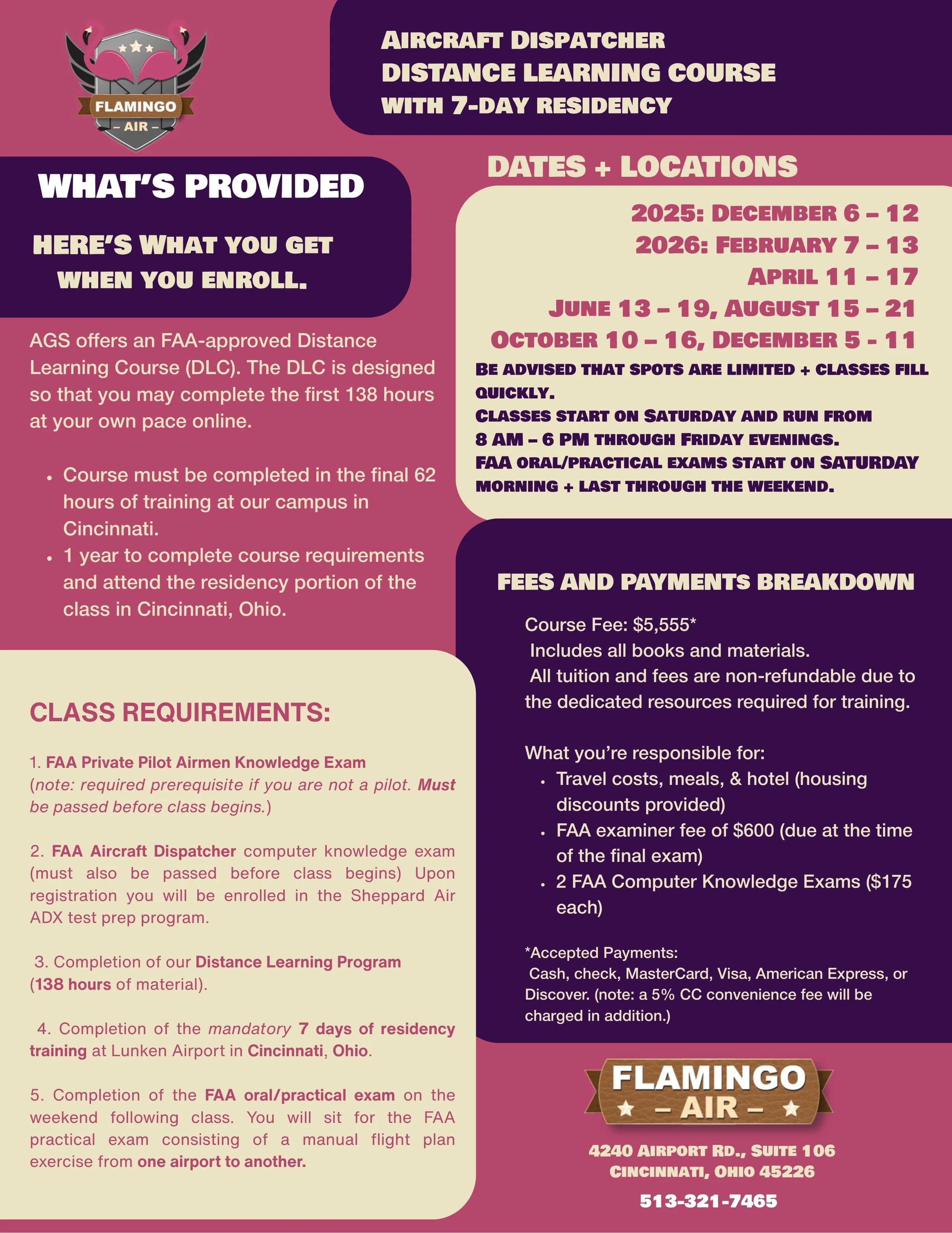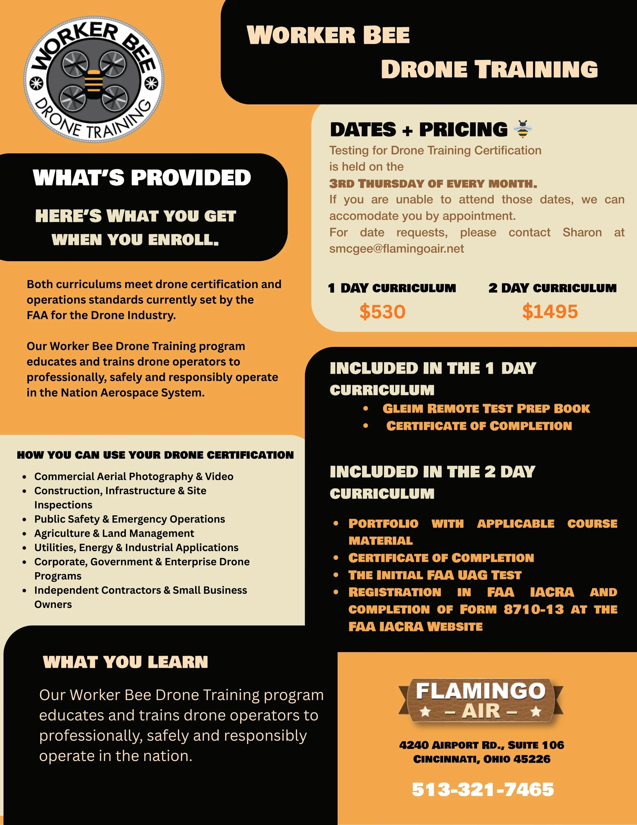 Flamingo Air provides training for ground school, flight school, and drone training.